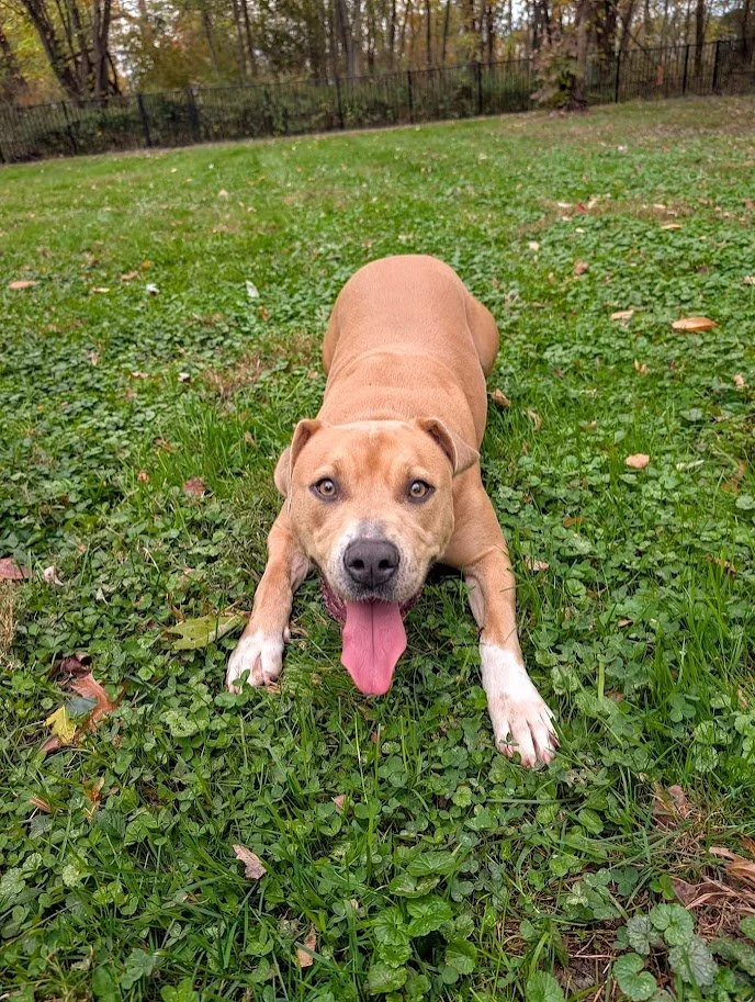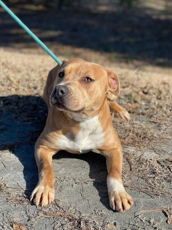 San is a beautiful 1 year old, 63 lbs pittie mix searching for a family of her own! She already spent 400 days out of her short life in the county animal control facility, but those days are behind her now that she's joined Nirvana. First arriving as a 6-month old stray, she unfortunately caught parvo while in the shelter and had to be hospitalized. She recovered and was able to go home with her owner, only to show back up as a stray again a few months later. This time, her owner reclaimed her male companion but left San behind. During her time at the shelter, San became a staff and volunteer favorite. She earned the role of tester dog, used as the first dog new intakes were introduced to. Despite everything going for her, she was overlooked time and time again, until her time was up. We're so grateful we were able to save her life and can't wait to find her the very best forever family!